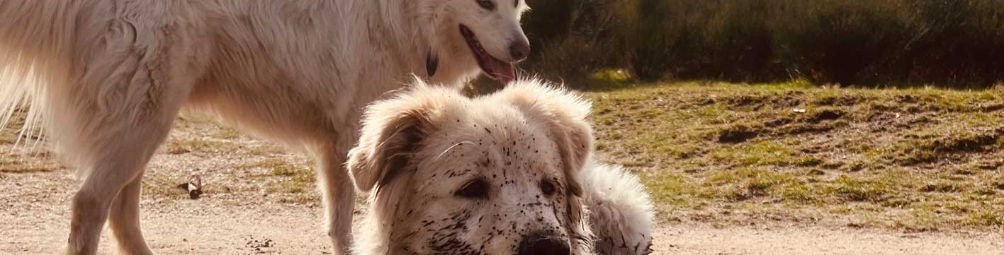 We hebben 4 honden…Rico en Emilia onze Maremma’s ( Berghonden): het zijn rescue honden die komen uit Italië Rico was de dorpshond die tegen alle mensen aardig was voor een stukje pizza.